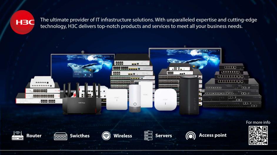 H3C is an industry leader in the provision of digital solutions, and is committed to becoming the most trusted partner of its customers in their quest for business innovation and digital transformation. We offer a full portfolio of digital infrastructure products, spanning across compute, storage, networking, 5G, security, terminal and related domains, and provide a comprehensive one-stop digital platform that includes cloud computing, big data, artificial intelligence (AI), industrial internet, information security, intelligent connectivity, and edge computing, as well as end-to-end technical services. We are also the exclusive provider of HPE® servers, storage and associated technical services in China.